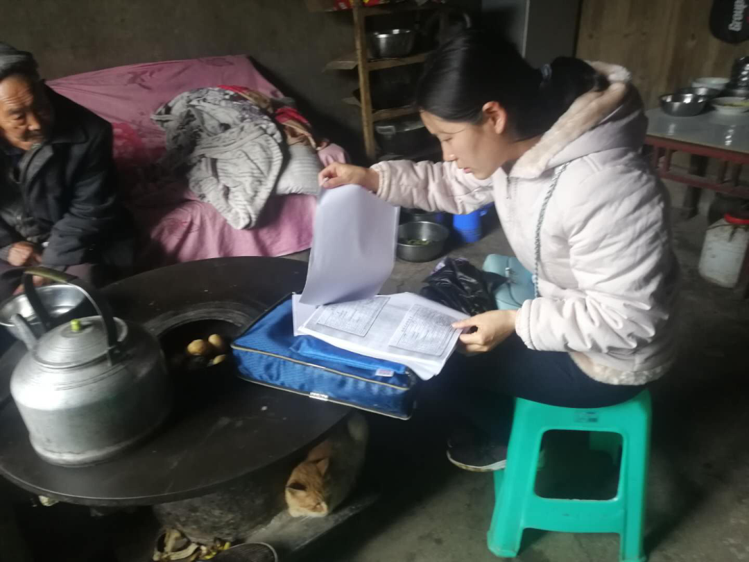 “你家去年的收入很可观哟,现在条件改善的很明显哈!”陈瑶同志很细致的和卡户测算收入,用心用情做到群众认可。