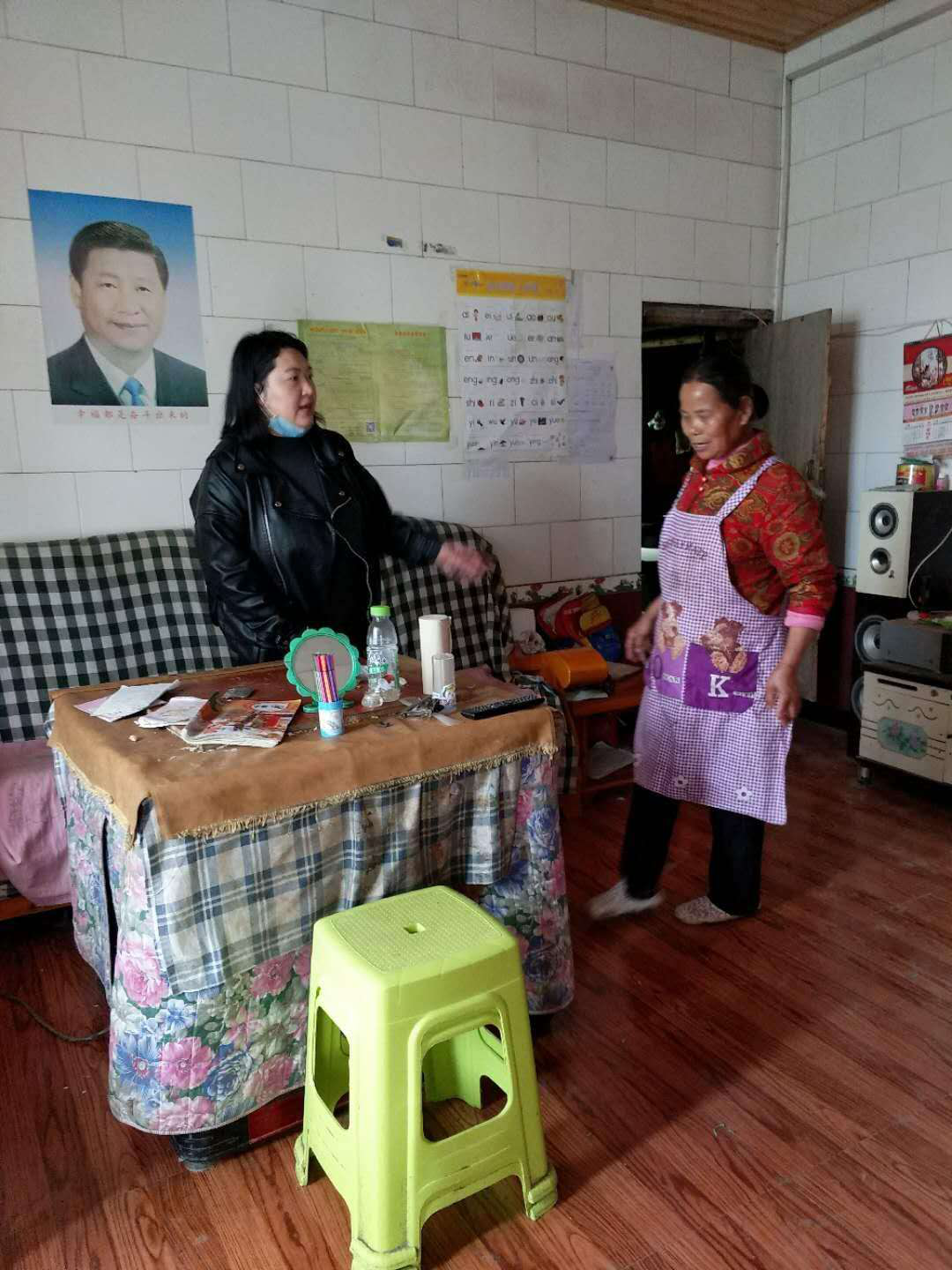 龚涵超老师同卡户拉家常,讲卫生,耐心十足。